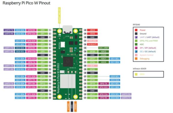 WiFi-ul este dat de chip-ul CYW43439 de la Infineon. Acesta suporta IEEE 802.11 b/g/n wireless LAN and Bluetooth 5.2. Totusi, doar wireless LAN este suportat de SW in versiunea de lansare.